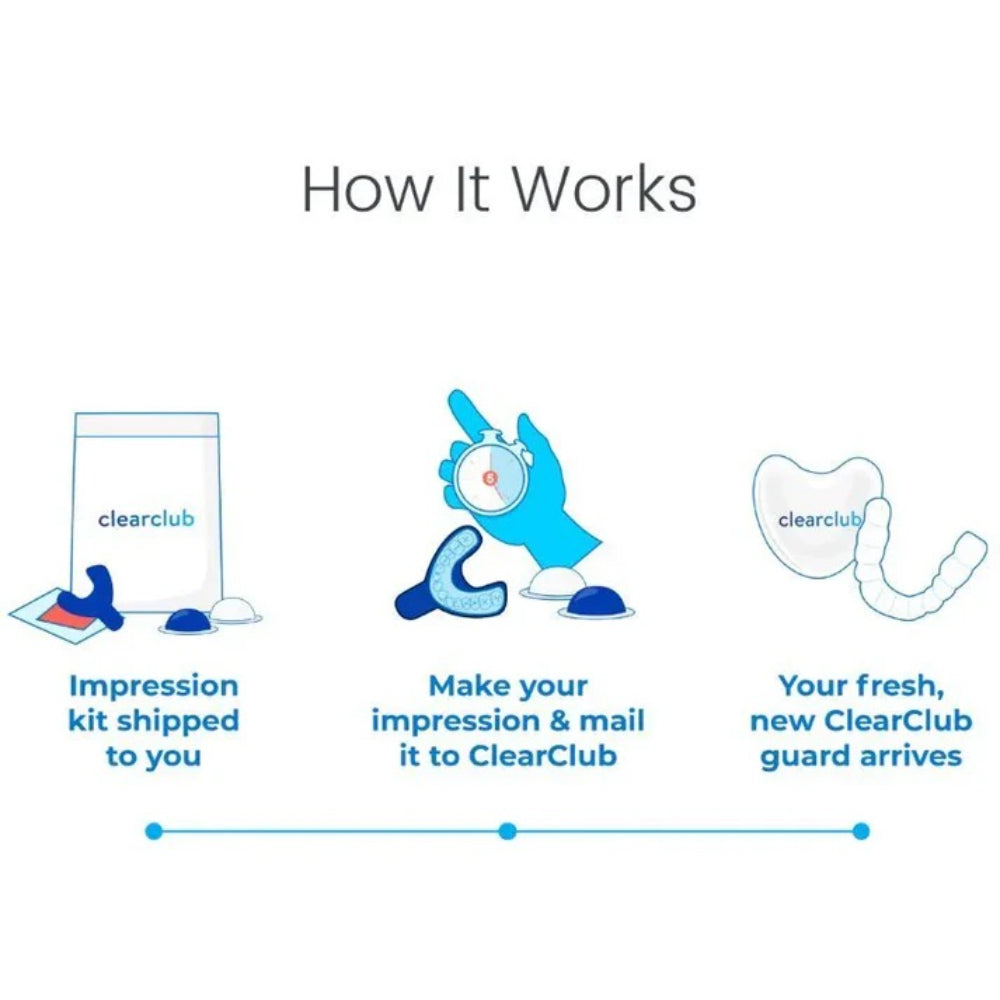 ClearClub delivers custom, high-quality night guards, direct to your door at an affordable price. We send you an at-home impression kit, you create your dental impression and return it using the prepaid label, and our US-based lab crafts a custom-fit guard just for you! All ClearClub night guards are FDA-approved, and we are trusted by over 100,000 satisfied customers. Once your impression is received at our facility, the final product should ship within 5-7 business days.